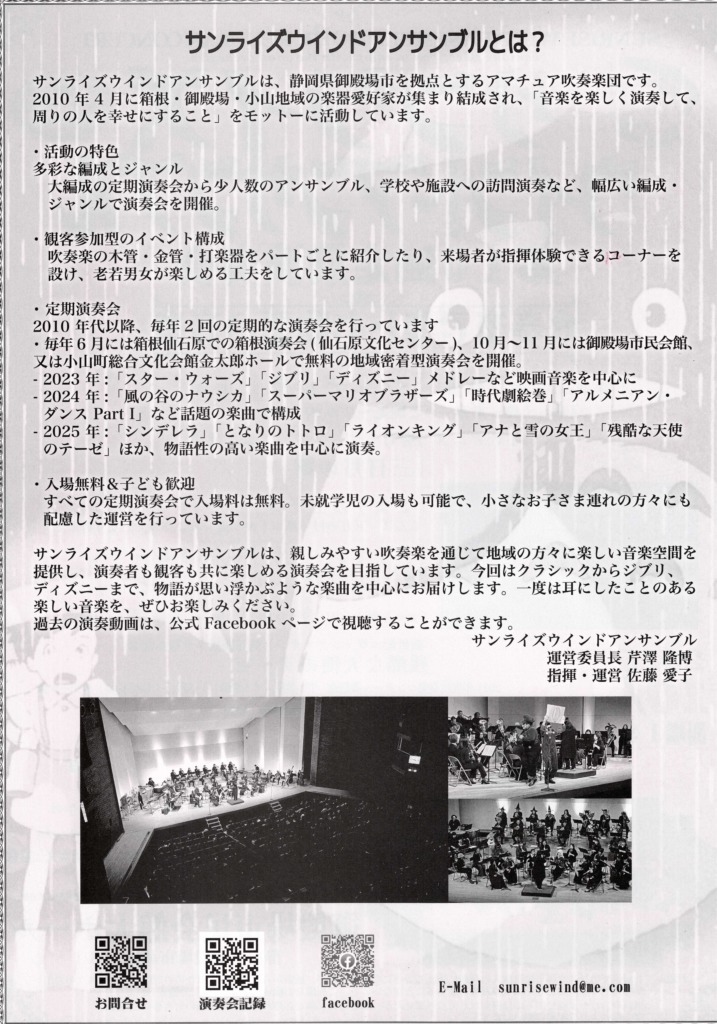 > 10/5 サンライズウインドアンサンブル 第10回定期演奏会