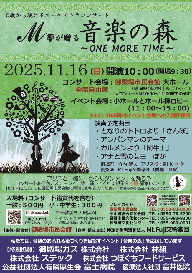 0歳から聴けるオーケストラコンサート「音楽の森~ONE MORE TIME~」が